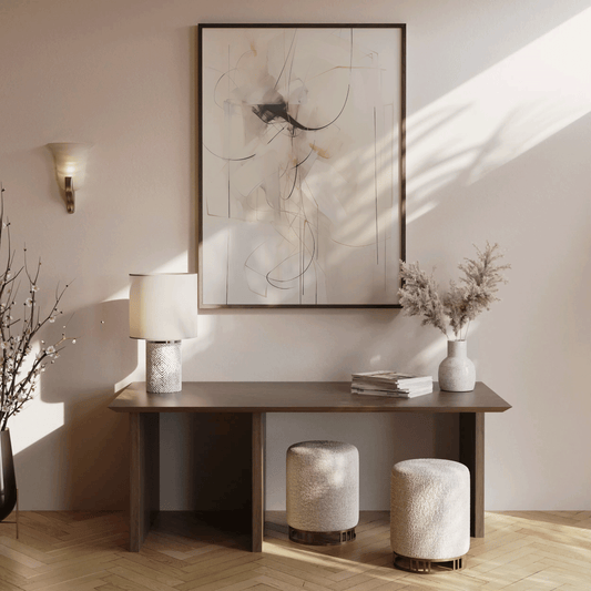 Neutral Abstract Minimalist Wall Art | Beige & Black Print