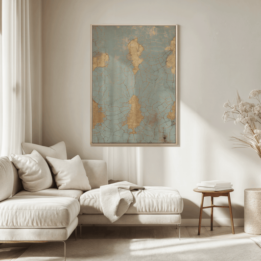 Cracked Blue & Gold Wall Art Print | Vintage Abstract Design