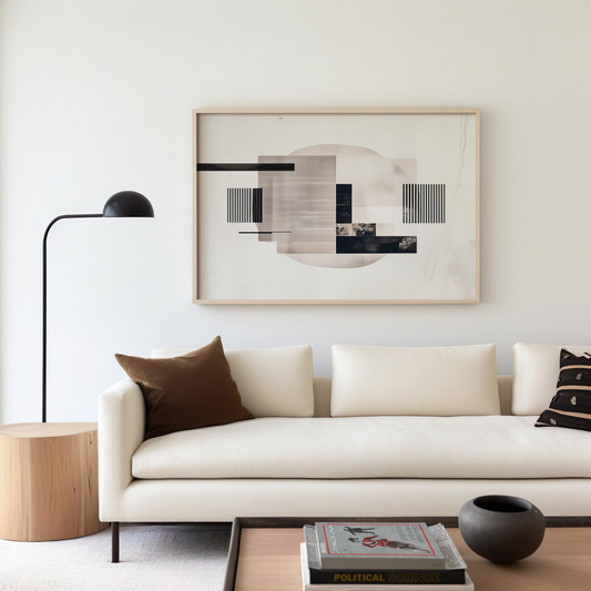 Neutral Abstract Geometric Wall Art in Tan and Black