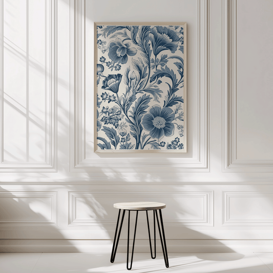 Vintage Blue Floral Wall Art | Botanical Pattern Print for Classic Spaces