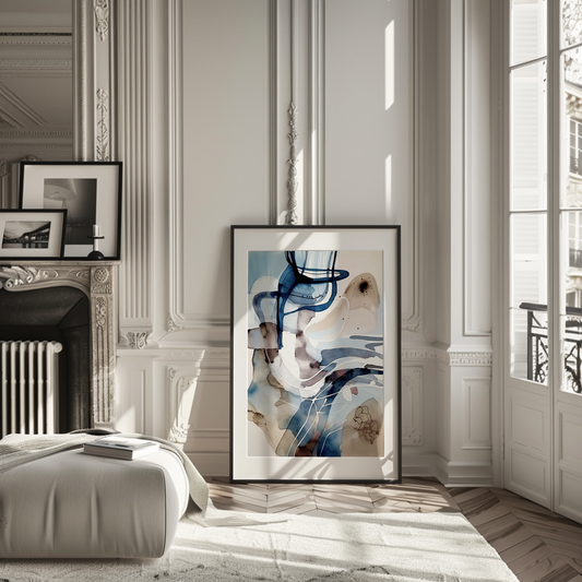 Blue and White Abstract Wall Art – Modern Watercolor Print