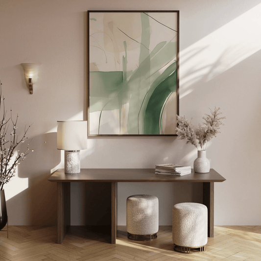 Beige and Green Abstract Wall Art – Modern Watercolor Minimalist Print