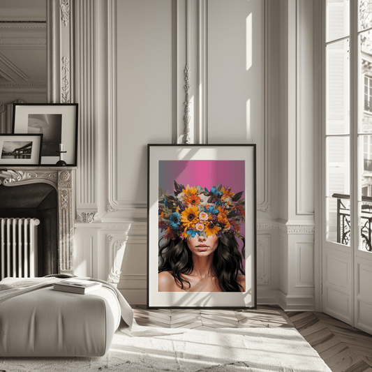 Flower Crown Woman Wall Art – Colorful Feminine Portrait