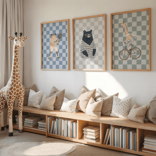 Bear Nursery Wall Art | Preppy Animal Print for Boys Room
