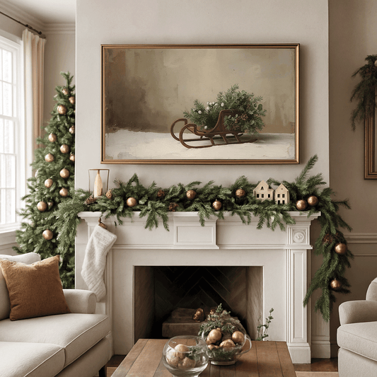 Rustic Vintage Sleigh Christmas Wall Art | Neutral Holiday Print