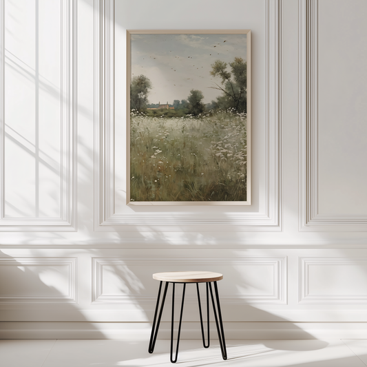 Countryside Field Wall Art – Vintage Wildflower Landscape Print