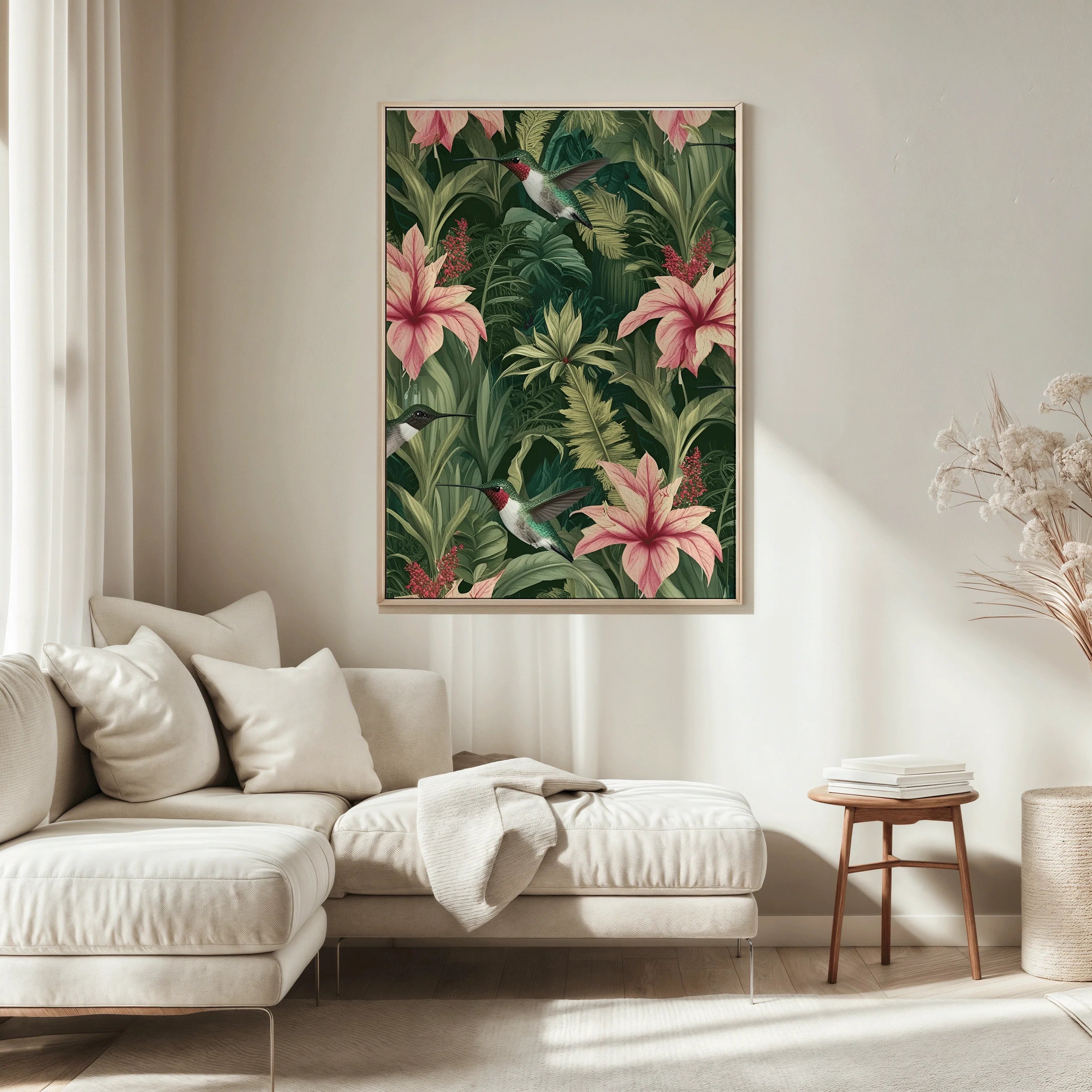 Tropical Hummingbird Botanical Wall Art – Jungle Floral Print