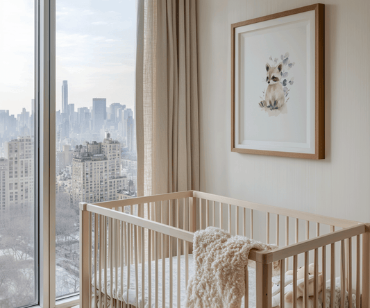 Woodland Nursery Wall Art | Baby Raccoon Print with Eucalyptus